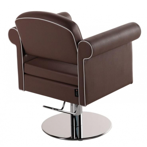 Кресло для клиента оригинальной формы, выполнено из высококачественного поролона, каркас обтянут искусственной кожей, мягкие подлокотники. Отличается наличием декоративных швов. Комплектуется стационаром, гидроподъемником с основанием на выбор: диск, квадрат.
