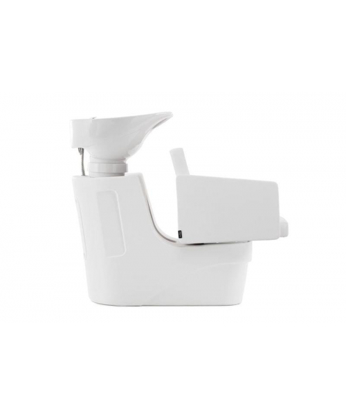 Керамическая раковина, смеситель, ручной душ, мягкое кресло с регулируемой спинкой и мягкими подлокотниками.