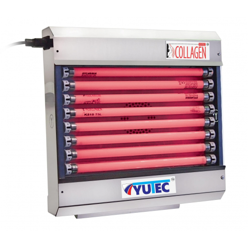 Компактный коллагенарий для домашнего использования YUTEC-Collagen от компании YUTEC позволит Вам улучшить состояние кожи, не выходя из дома. Он состоит из определенного количества терапевтических ламп, излучающих световые волны красного спектра длиной 633 нанометра. Способность этих волн проникать вглубь кожи почти на сантиметр приводит к запуску процесса оздоровления кожи. Задача ламп красного цвета достичь следующего: