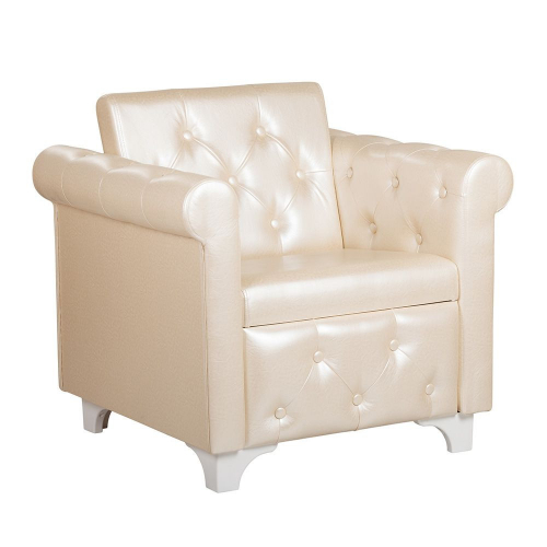 Комфортабельное кресло для холла Соната с мягкими широкими подлокотниками и удобной спинкой, декоративные пуговицы расположены на спинке, внешней части подлокотника и нижней части сиденья, опоры пластиковые белого цвета.