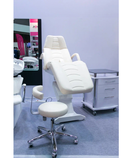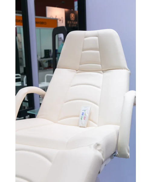 Косметологическое кресло “Ондеви-4”, 4 электропривода, беспроводной пульт управления - оснащено четырьмя электроприводами итальянского производства (Ciar S.p.A.), регулирующими высоту и спинку кресла, а также угол наклона сиденья и подножки.