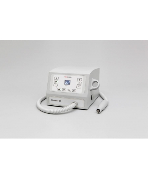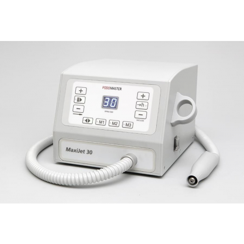 Педикюрный аппарат Podomaster MaxiJet 30 является современной моделью косметологического оборудования, предназначенного для использования в профессиональных косметологических центрах и салонах красоты. Встроенный пылесос позволяет собирать пыль, образовавшуюся во время процедуры, в специальный мешок. Устройство оснащено ультралегким наконечником, цифровым дисплеем, счетчиком часов работы и выключателем на ручке с силиконовым колпачком, защищающим от пыли, Мотор вращается со скоростью 30 000 оборотов в минуту, но с помощью специальной, педали, подключаемой к устройству, мощность можно регулировать самостоятельно.