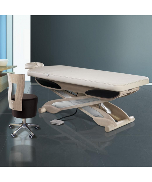 Многофункциональная кушетка "SERENEYA 1S" для массажа и SPA процедур для лица и тела, способна обеспечить максимальный комфорт. Кушетка оснащена одним электромотором, с помощью которого регулируется высота, регулировка осуществляется за счет ножного пульта управления, наклон спинки и сидения (ножной части), регулируется механически. Комплектуется американским подголовником с отверстием для лица. Это позволяет клиенту чувствовать себя комфортно на протяжении всей процедуры. Основание кушетки выполнено из натурального дерева с алюминиевыми вставками. Комфортабельный матрас эргономичной формы создан на основе последних разработок мастеров компании.